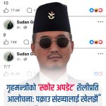 गृहमन्त्रीले पक्राउलाई खेल बनाए? ‘स्कोर अपडेट’ पोस्टले विवाद चर्कियो गृहमन्त्री सुदन गुरुङले सामाजिक सञ्जालमा पक्राउ परेका व्यक्तिहरूको संख्या ‘स्कोरबोर्ड’ जस्तो शैलीमा सार्वजनिक गरेपछि चौतर्फी आलोचना सुरु भएको छ। उनले आफ्नो फेसबुकमार्फत ‘७/७’, ‘८’, ‘१०’ जस्ता अंक पोस्ट ..
