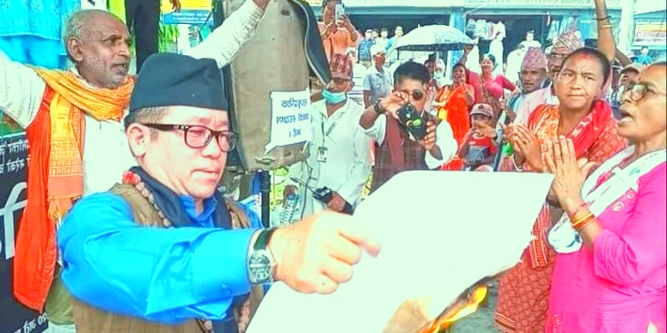 सुन्दरहरैंचा, २१ साउन । सुन्दरहरैंचाको विराटचोकमा वन नियमावली २०७९ जलाइएको छ । दलित, जनजाति र महिलाको अधिकार खोसिएको भन्दै उक्त नियमावली जलाइएको हो । संविधानले दिएको अधिकार सो नियमावलीले खोसेको भन्दै उक्त नियमावली जलाउनु परेको महासंघकी केन्द्रीय अध्यक्ष भारती पाठकले बताएकि छिन् ।