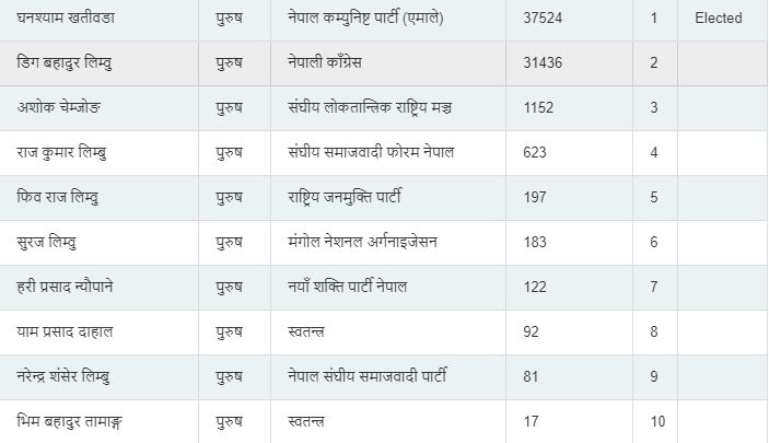 उर्लाबारी, लेटाङ नगरपालिका, मिक्लाजुङ र केराबारी गाउँपालिका समेटिएको मोरङ क्षेत्र नं. १ मा २०७४ को नतिजा भने यस्तो थियो ।