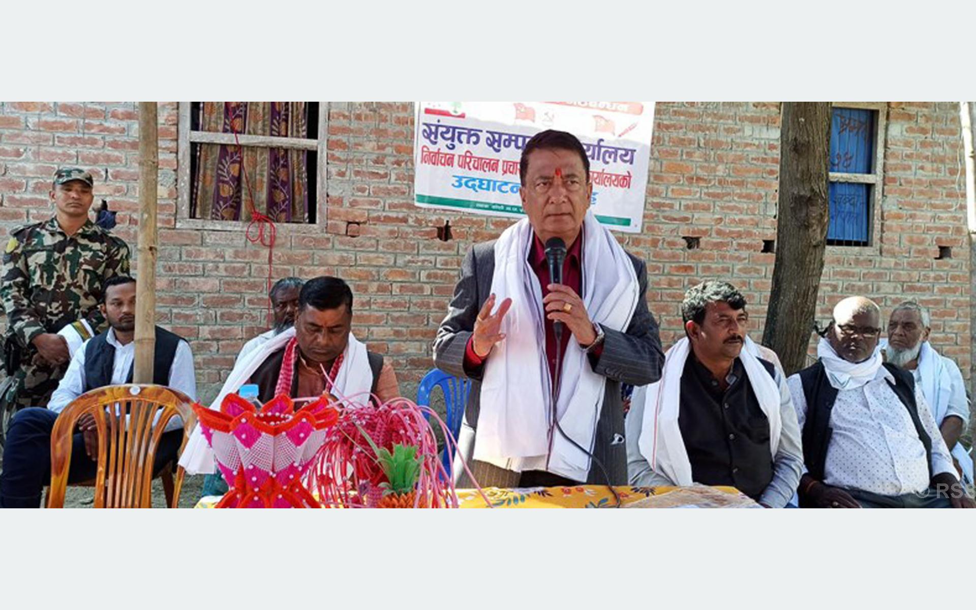 इनरुवा, १३ कात्तिक । सञ्चार तथा सूचना प्रविधिमन्त्री ज्ञानेन्द्रबहादुर कार्की सुनसरीको कोशी गाउँपालिका–५ मा आइतबार लोकतान्त्रिक बाम गठबन्धनको संयुक्त कार्यालय उदघाटन कार्यक्रममा मन्तव्य राख्नुहुँदै। तस्बिर : अजितकुमार झा÷रासस