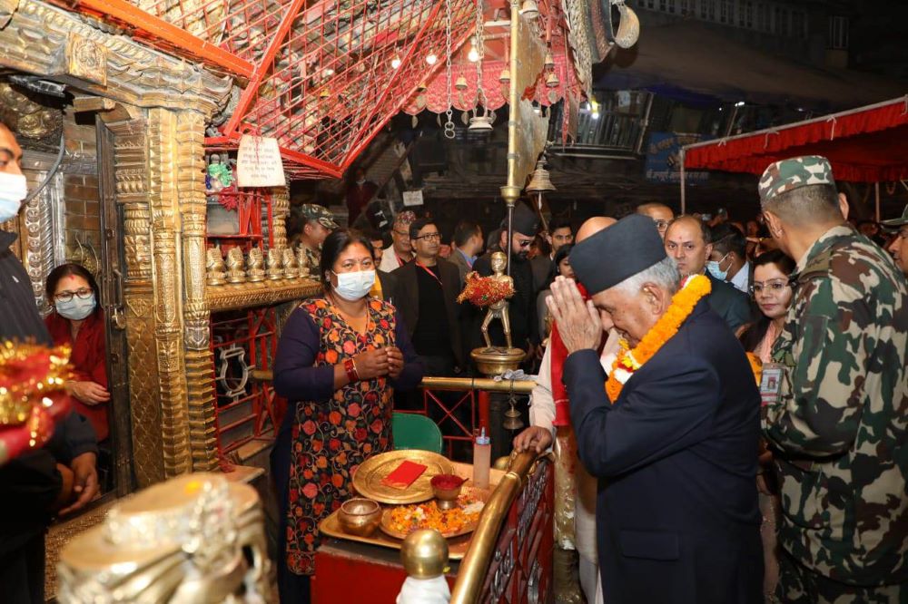 सो अवसरमा राष्ट्रपति पौडेलले पुजारीको हातबाट प्रसाद ग्रहण गर्नुभयो ।