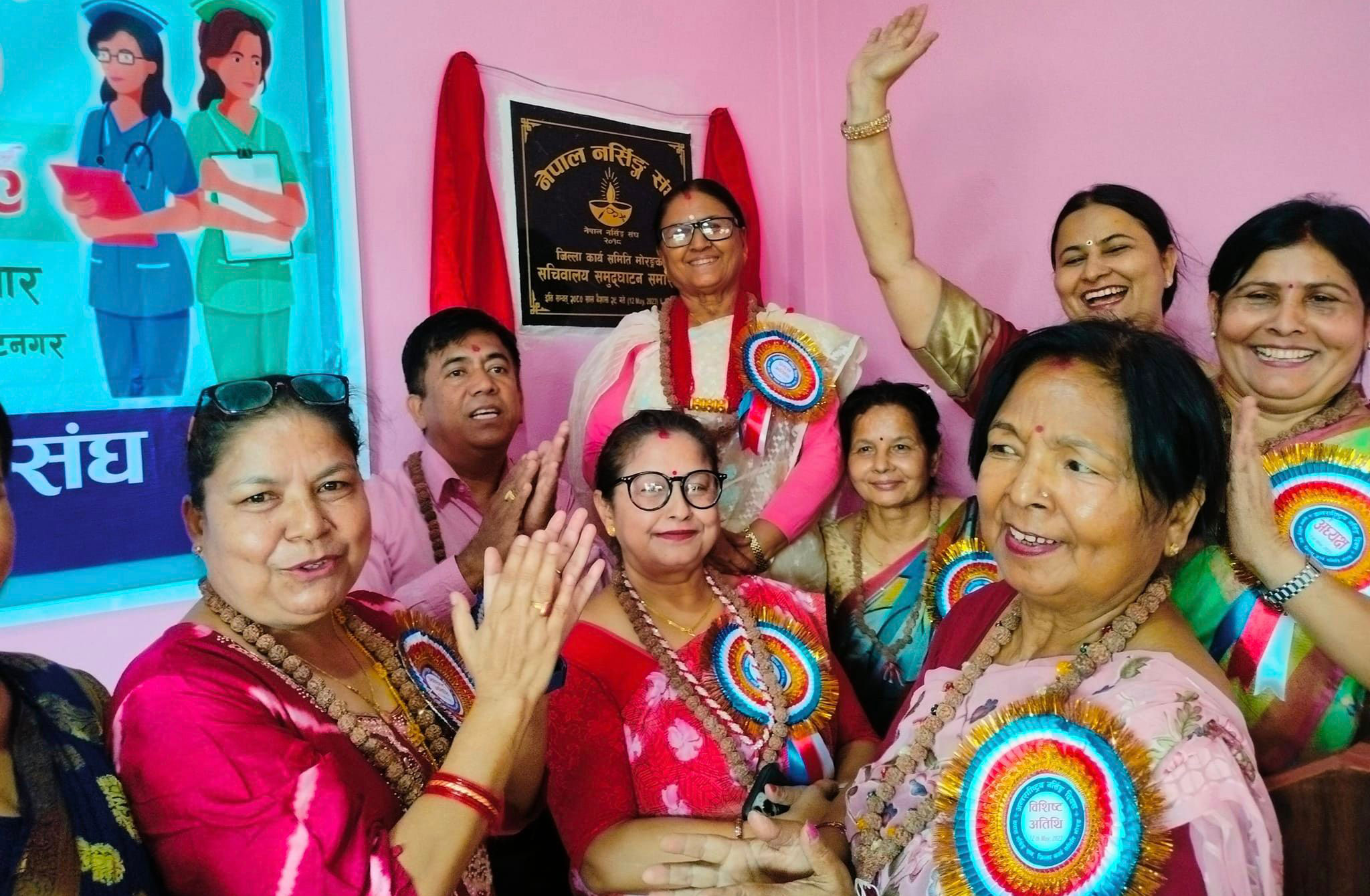 जग्गादाता होमादेवी न्यौपानेले शिलालेखको पर्दा उघारेर भवन उद्घाटन गरिन् । कार्यक्रममा बोल्दै जग्गादाता न्यौपानेले नर्शहरुलाई विरामीको राम्रो सेवा गर्न सुझाव दिदै नर्सिङ संघलाई आफ्नो भूमिका अब्बल बनाउँन शुभकामना दिइन् । नोबेल शिक्षण अस्पतालका सञ्चालक डा।सुनिल शर्माकी आमासमेत रहेकी न्यौपानेले नर्सिङ संघको कार्यालयलाई व्यवस्थित गर्न थप ५० हजार प्रदान गर्ने घोषणा पनि गरिन् । कार्यक्रममा विराटनगर महानगरपालिका–४ का वडाध्यक्ष जितन थापाले नर्सिङ संघलाई आगामी दिनमा वडाको तर्फबाट सहयोग गर्ने प्रतिवद्धता जनाए ।
