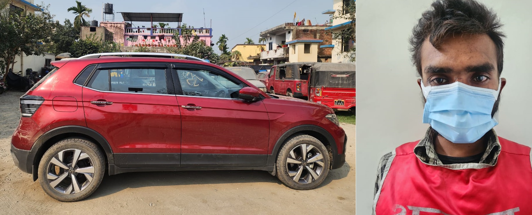 पक्राउ पर्नेमा विराटनगर महानगरपालिका-४ का २४ वर्षीय मन्तोषकुमार बिन छन्। उनी पूजा इन्टरनेशनलबाट भक्सवागन कम्पनीको टिगुन मोडलको रातो कार चोरी गरेर भाग्दै थिए।