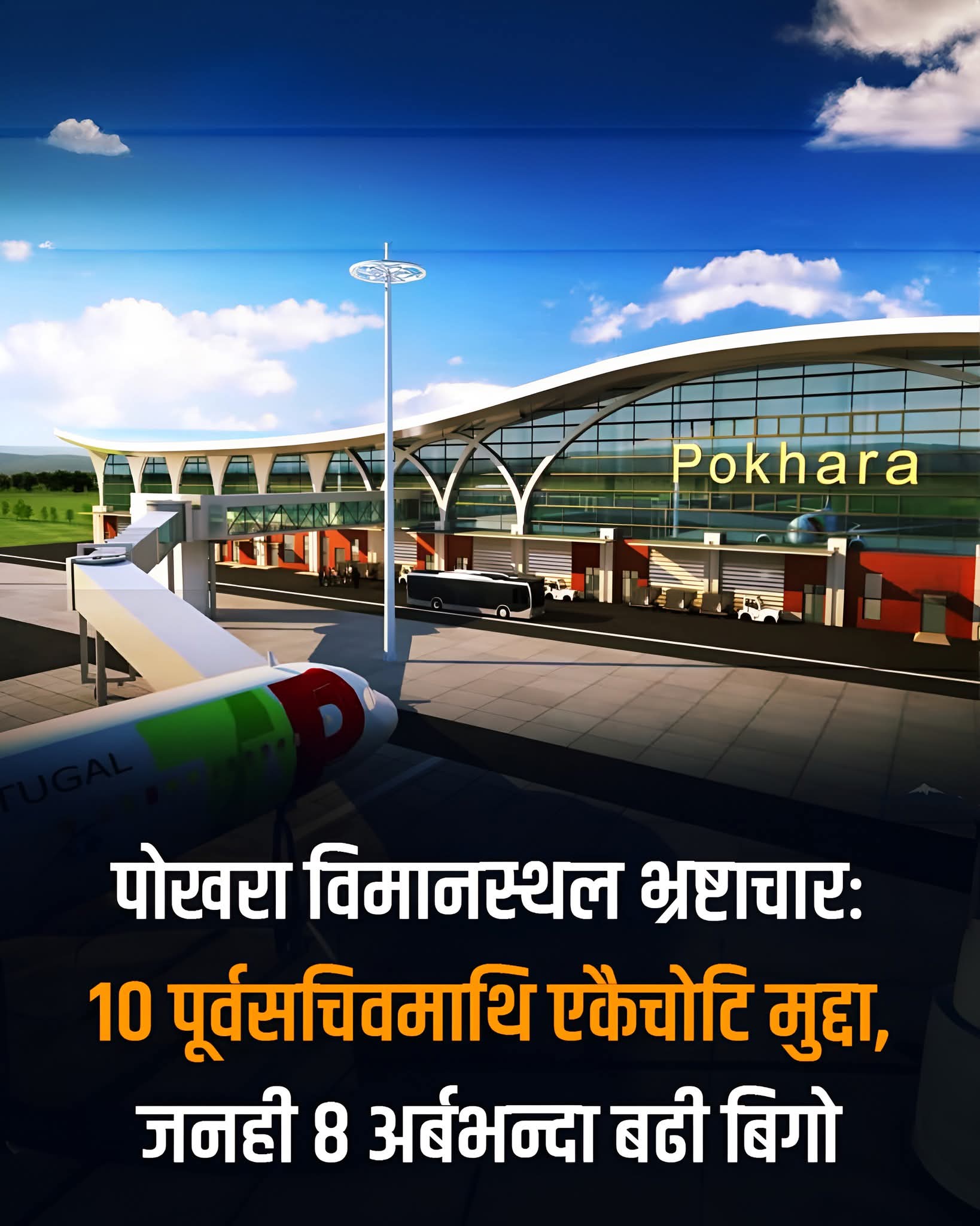 पोखरा अन्तर्राष्ट्रिय विमानस्थल निर्माणमा व्यापक अनियमितता भएको आरोप लागेपछि अख्तियार दुरुपयोग अनुसन्धान आयोगले १० जना पूर्वसचिवविरुद्ध भ्रष्टाचार मुद्दा दायर गरेको छ। दायर मुद्दामा हरेक पूर्वसचिवलाई जनही ८ अर्ब ३६ करोड ७३ लाख ५५ हजार २९७ रुपैयाँ ५० पैसा बिगो माग गरिएको छ।