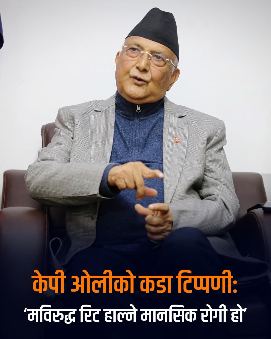 पूर्वप्रधानमन्त्री तथा एमाले अध्यक्ष केपी शर्मा ओलीले आफूविरुद्ध सर्वोच्च अदालतमा दायर गरिएको रिट निवेदनप्रति कडा प्रतिक्रिया जनाउँदै विपक्षीलाई ‘मानसिक रोगी’ को संज्ञा दिएका छन्। सर्वोच्च अदालतमा पेश गरेको लिखित जवाफमै उनले रिट दर्ता गर्ने कार्यलाई ‘मनोरोगको द्योतक’ भनेर उल्लेख गरेका हुन्।