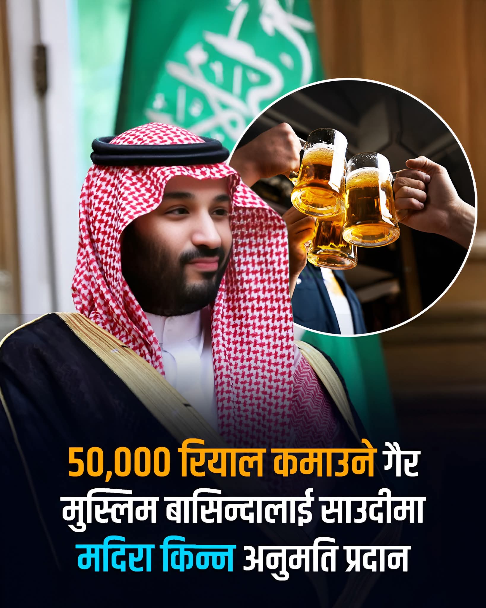 साउदी अरबले सामाजिक रूपान्तरणका प्रयासहरूलाई अघि बढाउँदै गैर–मुस्लिम विदेशी बासिन्दाहरूका लागि मदिरा पहुँच विस्तार गर्ने अर्को महत्वपूर्ण निर्णय गरेको छ। सन् २०२४ मा रियाधमा पहिलो सरकारी मदिरा पसल खोलेपछि—जो प्रारम्भमा केवल विदेशी कूटनीतिज्ञहरूका लागि सीमित थियो—अब यो सुविधा निश्चित शर्त पूरा गर्ने अन्य विदेशी बासिन्दासम्म विस्तार गरिएको हो।