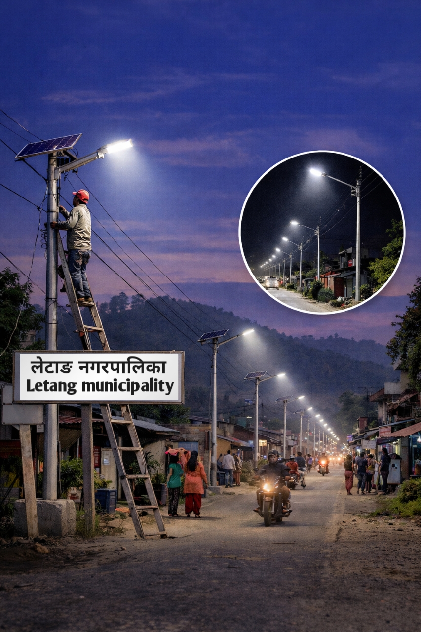 लेटाङ ७, पुस । लेटाङ नगरपालिकाको पहलमा मिलनचोक–गुवाबारी फेदी तथा वडा नं. ४ अन्तर्गत चिल्ड्रेन पार्क–घिमिरेचोक सडकखण्डमा आगामी ९ दिनभित्र प्रत्येक पोलमा सडक बत्ती जडान गरिने भएको छ।