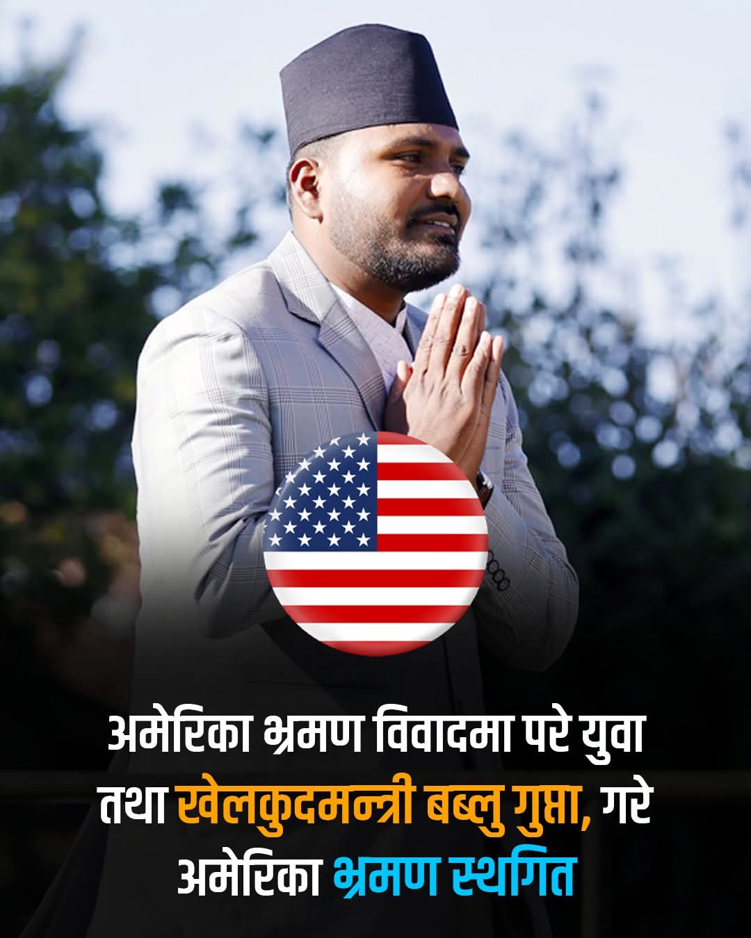 युवा तथा खेलकुदमन्त्री बब्लु गुप्ता पछिल्लो समय अमेरिका भ्रमणको विषयलाई लिएर विवादमा तानिएका छन्। मन्त्रालय सम्हालेको छोटो समयमै उनी गैरआवासीय नेपाली संघ (एनआरएनए) अमेरिकासँग जोडिएको निमन्त्रणाको आधारमा अमेरिका जाने तयारीमा थिए। तर, उक्त निमन्त्रणा आधिकारिक नभएको र फर्जी कागजात देखाएर मन्त्रिपरिषद्बाट भ्रमण स्वीकृत गराएको आरोप लागेपछि मन्त्री गुप्तामाथि चौतर्फी आलोचना सुरु भयो।