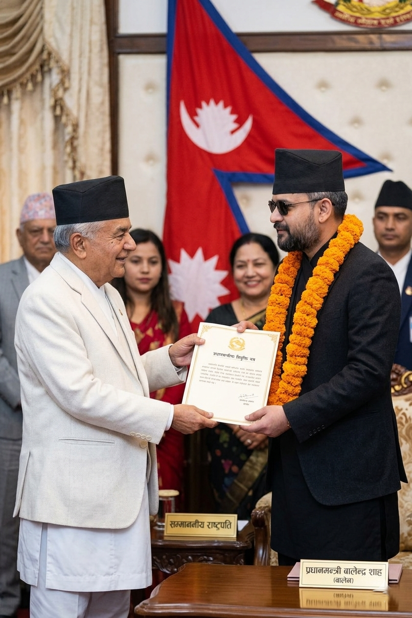 काठमाडौं, १३ चैत। राष्ट्रपति रामचन्द्र पौडेलले प्रधानमन्त्रीमा रास्वपा संसदीय दलका नेता बालेन्द्र शाह (बालेन)लाई नियुक्त गरेका छन् ।