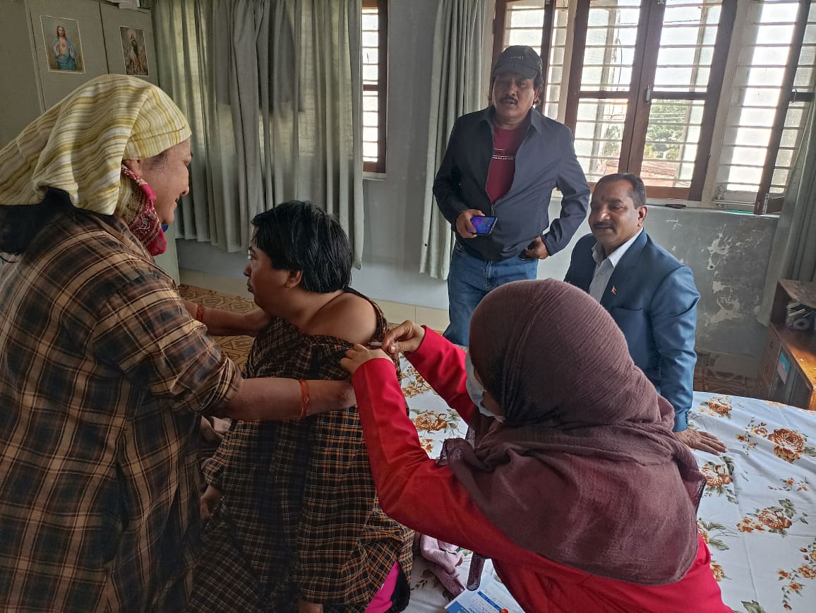 विराटनगर,५ फागुन । विराटनगर ९ का अध्यक्ष विश्वनाथ प्रसाद भगतको अगुवाईमा असक्तहरुलाई घर घरमा खोप पुर्याउन थालिएको छ ।स्वास्थ्यकर्मीहरुको टोलि लिएर भगत असक्तहरुको घर घरमै गएर कोरोना विरुद्धको भेरोसिल खोप खोप सेवा प्रदान गरेका हुन ।